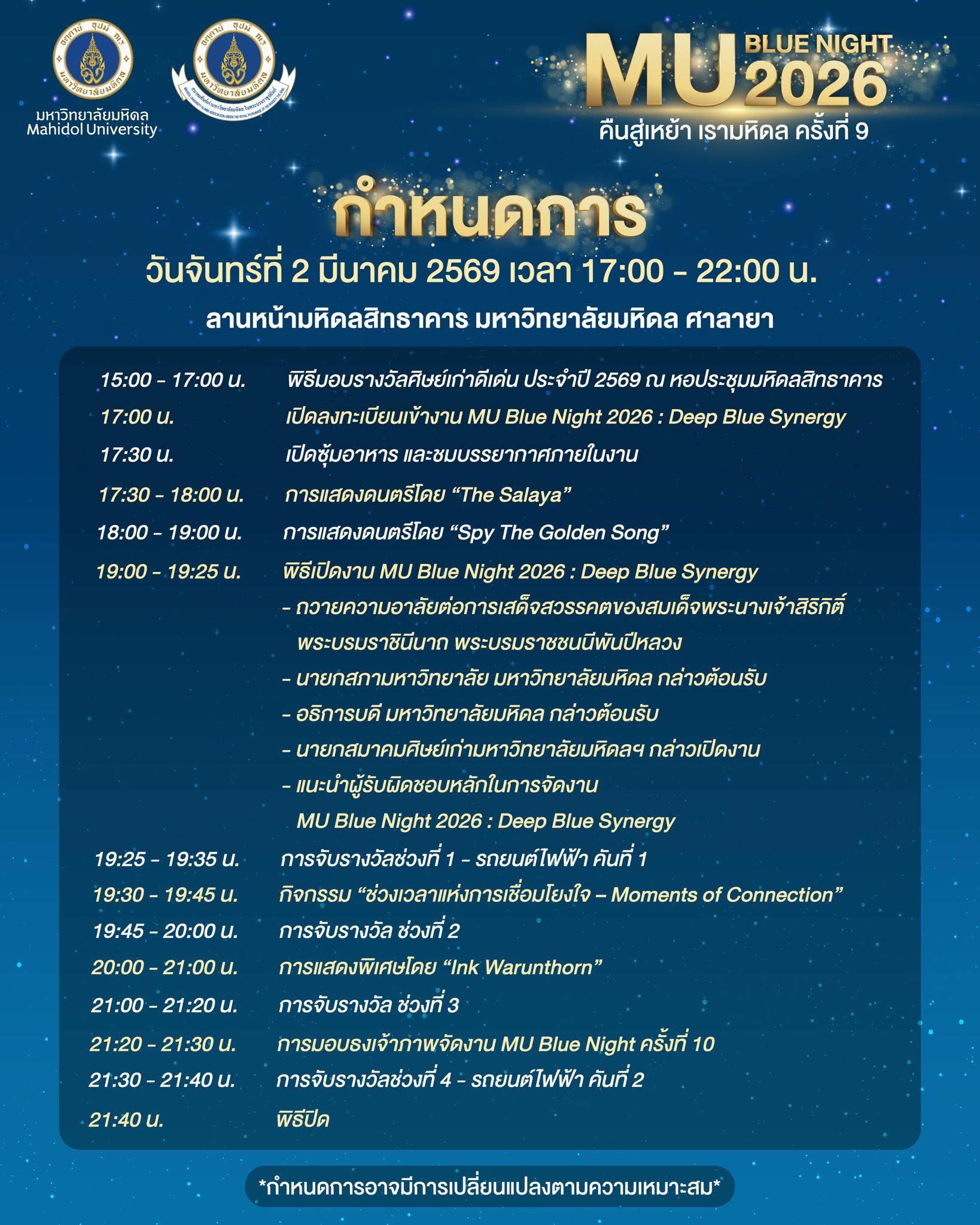 🐋MU Blue Night 2026 คืนสู่เหย้า เรามหิดล ครั้งที่ 9 “Deep Blue Synergy”
